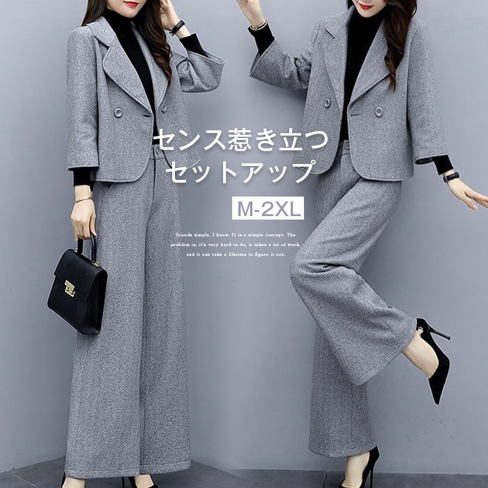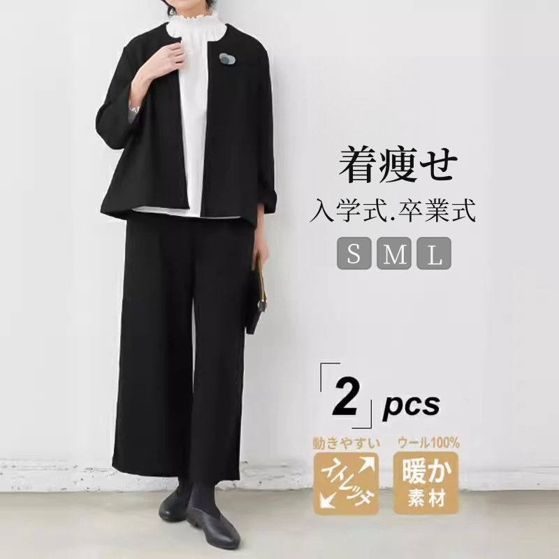 セットアップ レディース スーツ パンツスーツ セレモニー ママセット ビジネススーツ 洗える 大きいサイズ フォーマル テーラードジャケット&ワイドパンツ 2点セット 入学式 卒業式 入園式 卒園式