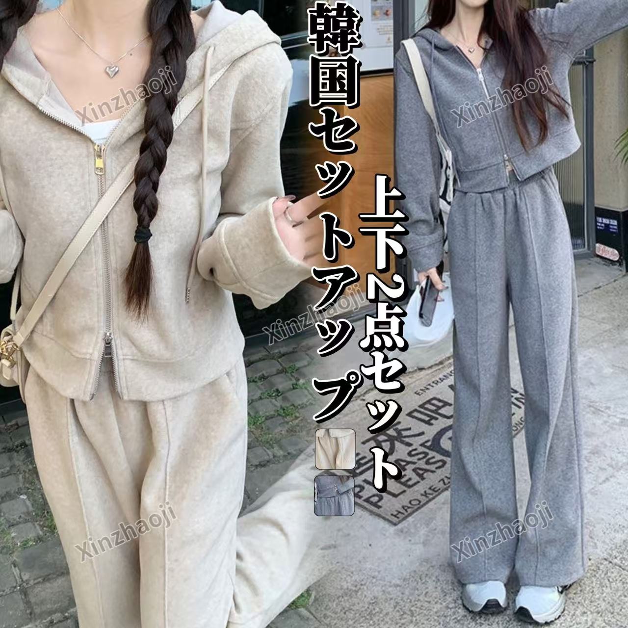 2025新入荷怠惰な風 セットアップ レディース 大きいサイズ スウェット上下セット 裏起毛パーカー+スウェットパンツ 防寒 暖かい 体型カバー 着痩せ 韓国ファッション