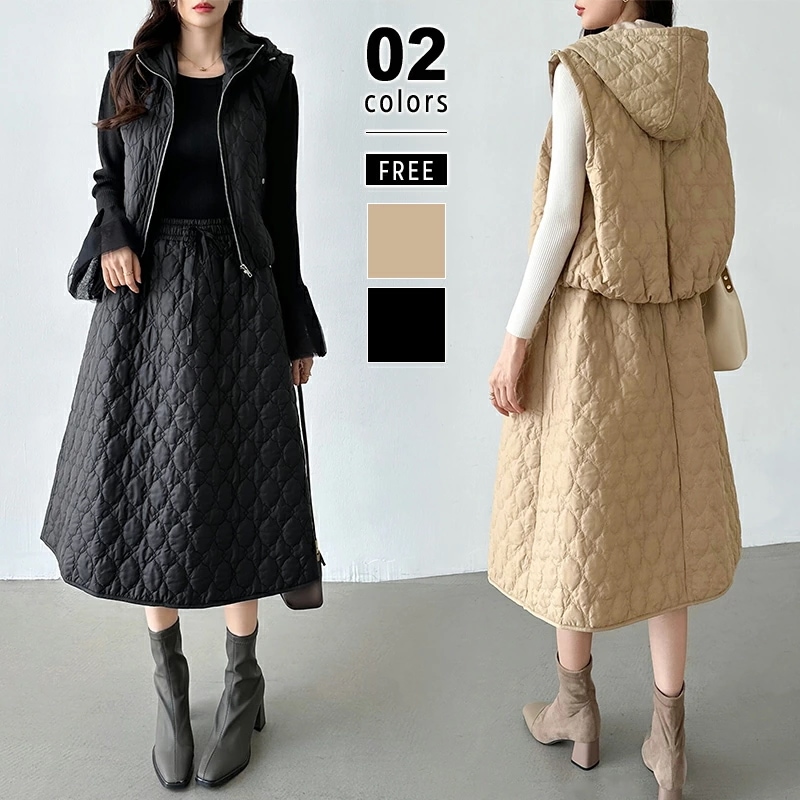 キルティング セットアップ スカートベスト上下セット スカート ベスト レディース カジュアル 上下セット 暖かい 防寒 キルティングベスト キルティングスカート 軽量
