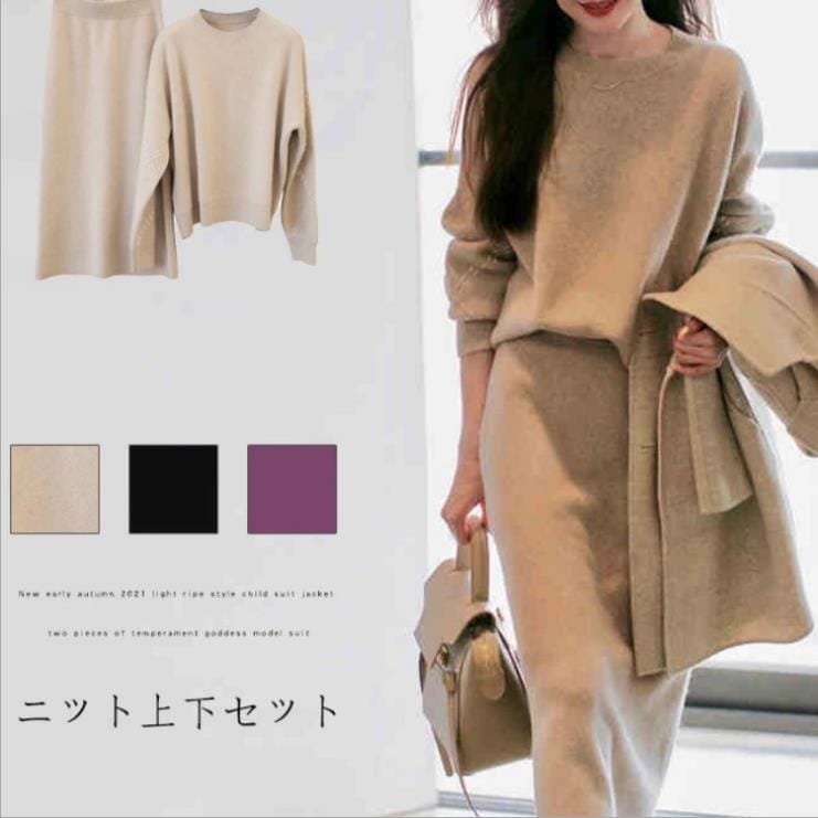 ニット セットアップ レディース カーディガン 長袖 2点セット 上下セット ニットセーター プルオーバー インナー ニットワンピース 秋冬