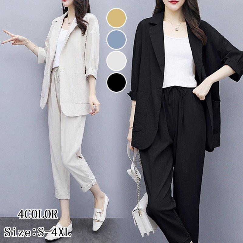 セットアップ レディース 春 秋 スーツジャケット 2点セット カジュアルスーツ おしゃれ テーパードパンツ 九分丈 通勤 セットアップ