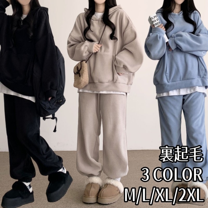 セットアップ レディース 大きいサイズ 裏起毛 2点セット 上下セット パーカー パンツ 長袖 フード付き ジャージ スウェット 秋冬 セットアップ