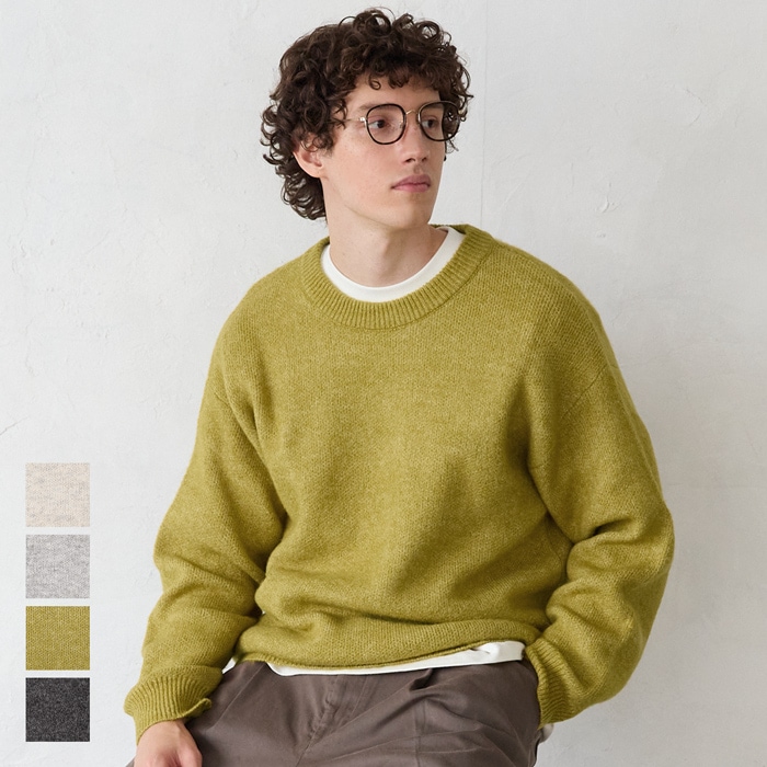 coca モヘア風クルーネックリラックスニットトップス メンズ ニット セーター