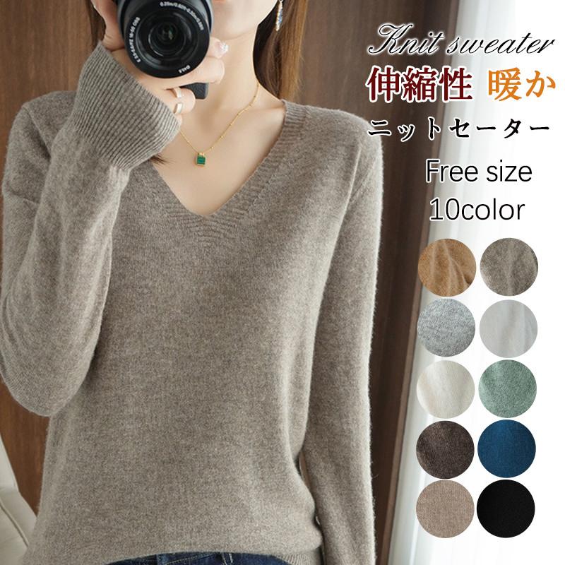 ニットセーター レディース 長袖 秋冬 Vネック 薄手 インナー セーター トップス 重ね着 可愛い 通勤 OL 体型カバー きれいめ ニット セーター