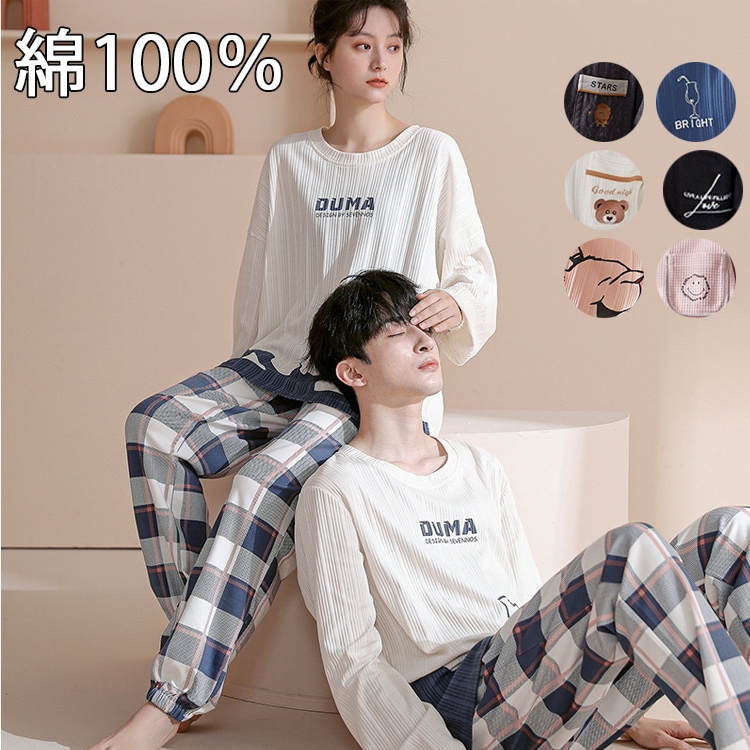 綿100% セットアップ 長袖 トップス & ロングパンツ コットン カップル ペアルック お揃い パジャマ メンズ レディース ルームウェア 部屋着 スウェット 上下セット パジャマ 春 秋 カット