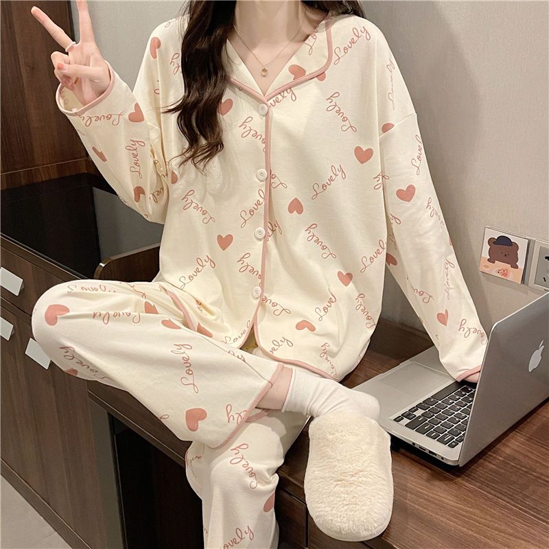韓国版パジャマレディース春秋冬長袖長ズボンセット夏の日の部屋着かわいいハート桃楽ちんルームウェアルームウェア ルームウェア