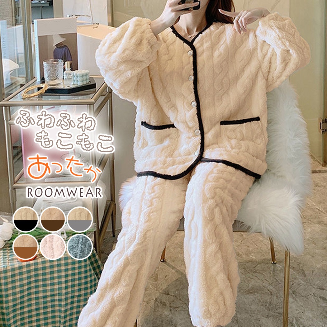 パジャマ ルームウェア レディース 上下セット モコモコ 防寒 シンプルパジャマ 寝巻き もこもこ あったか ゆったり 暖か 部屋着