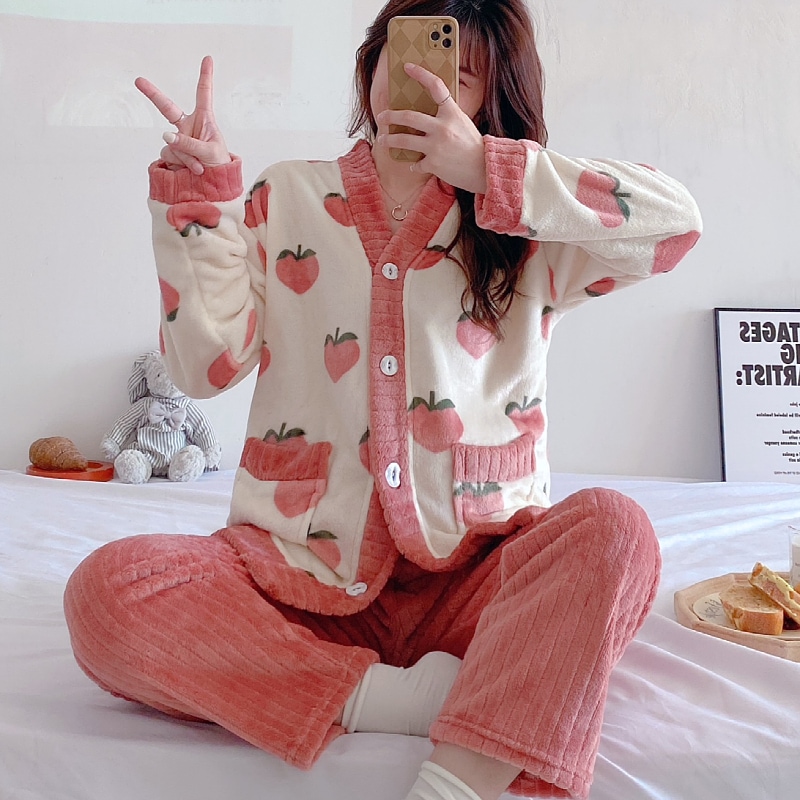 秋冬パジャマ レディース 可愛い ルームウェア 上下セット 部屋着 モコモコ 前開き 柔らかい ルームウェア