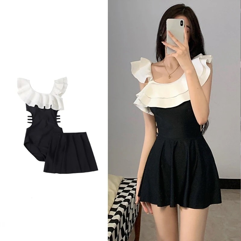 水着 韓国ファッション 激安水着 2025 新作韓国ファッション 水着女性セパレートins風コンサバスカートが温泉水着に ワンピース水着