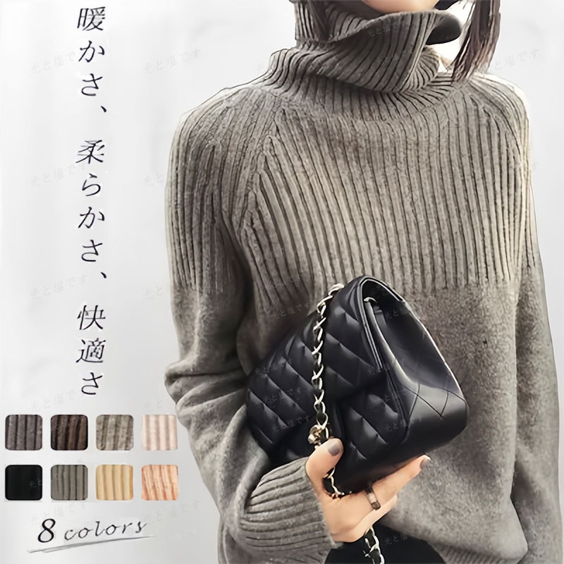 ハイネック ニット レディース トップス 長袖 無地 セータートップスレディース韓国ファッション カーディガン