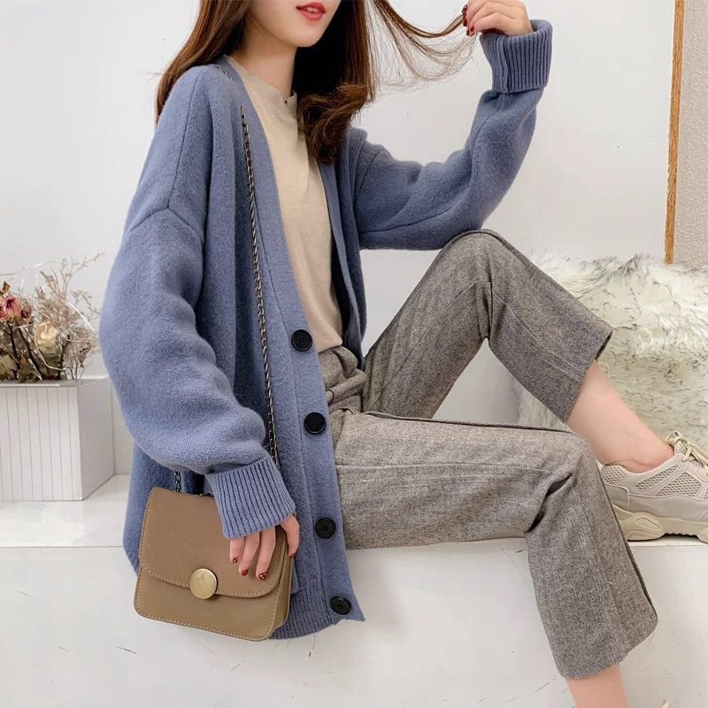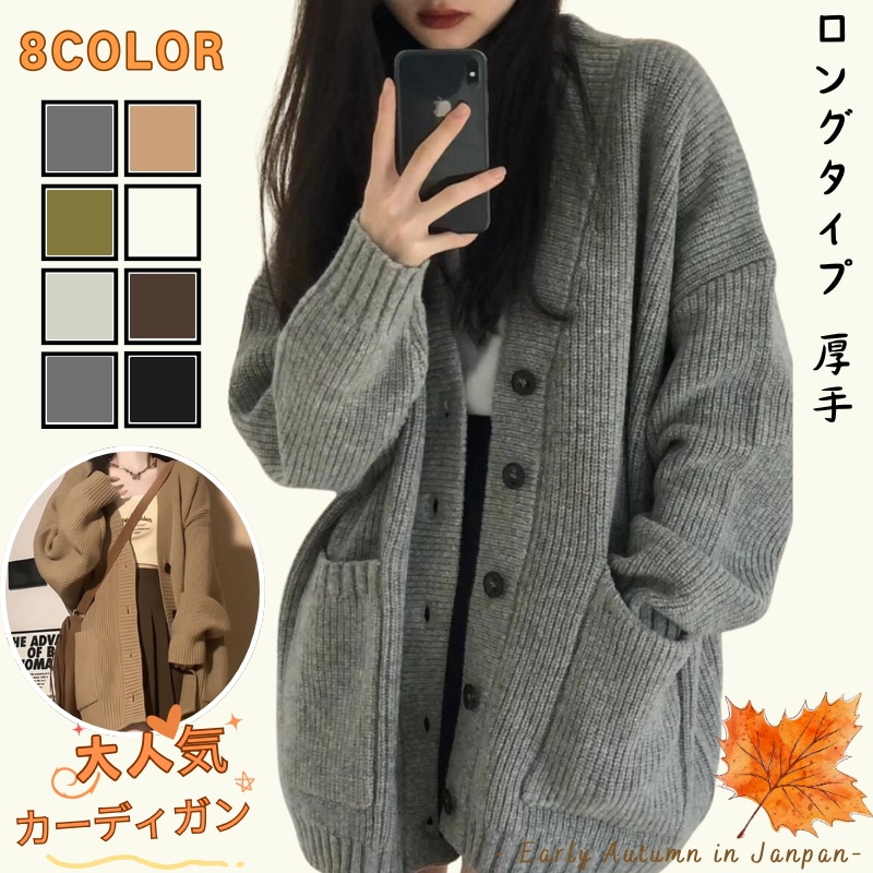 新色追加 人気の初秋ロングカーディガン秋冬新作セータージャケット韓国ファッションルーズニットセーターカーディガンミドル丈