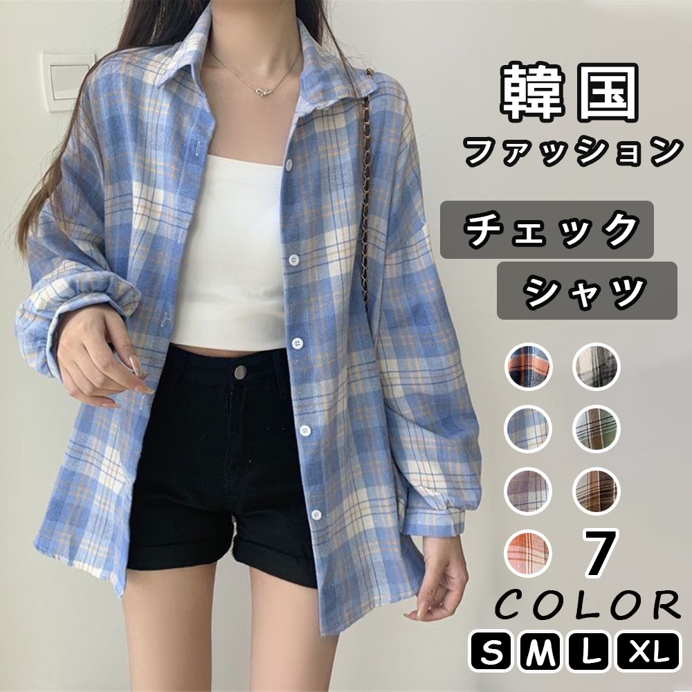 ブラウス 長袖 トップス 大きいサイズ 韓国ファッション ロング カジュア アウター シャツ レディース チェックシャツ 秋