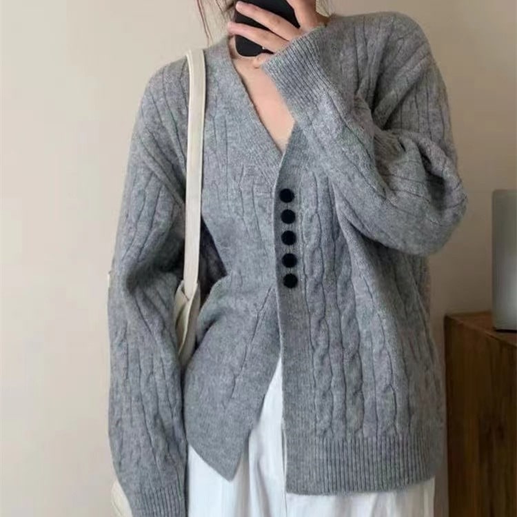 新作 ニットカーディガン 秋冬 韓国ファッション レディーストップス 百掛け ゆったり 長袖アウター カーディガン