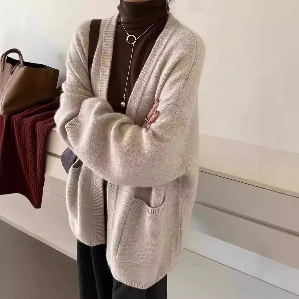 ベーシックニットニットカーディガン秋冬新作ゆるニットカーディガンレディースゆるニットコートトップス カーディガン