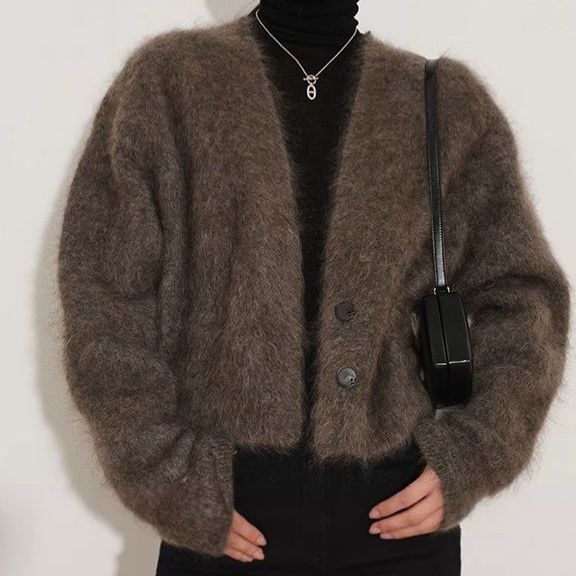 ニットカーディガン レディーストップス 韓国風 長袖ゆったりアウターカジュアル秋冬ショート丈ゆったりアウター カーディガン