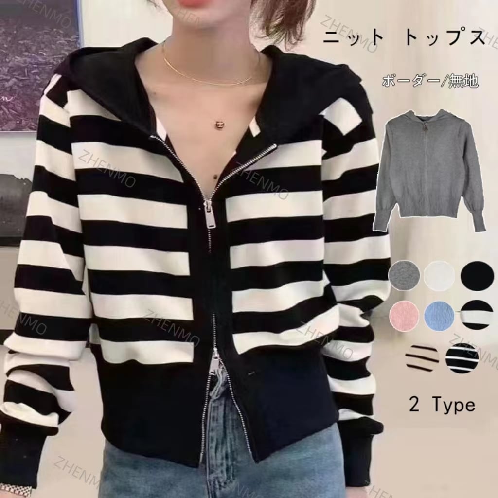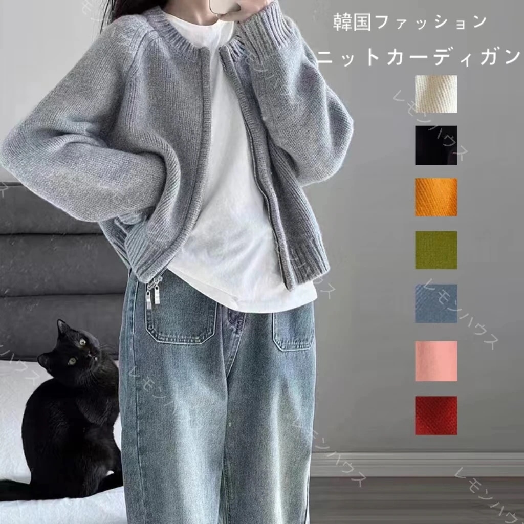 ダブルジップ カーディガントップス アウター カーディガン ニットセーター レディース 重ね着上手秋冬 長袖 ラウンドネック ニット 厚手 ショート ダブルジップ カーディガン