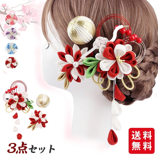 髪飾り 成人式 3点セット 髪留め Uピン 花 リボン 卒業式 七五三 お祭り 着物 浴衣 和装 結婚式 花嫁 子供 大人 プレゼント ギフト