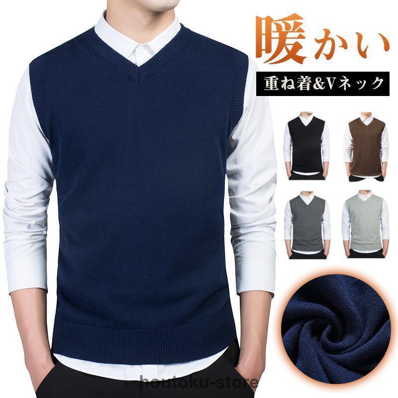 ニットベスト メンズ 重ね着 ジレ プルオーバー 春秋冬 チョッキ 暖かい Vネック ニット トップス 保温 ビジネス 重ね着 仕事 ゴルフ
