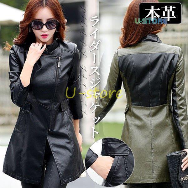 レザージャケット レディース ライダースジャケット シープスキン 着痩せ 本革 レザーコート ラム革 ロングコート トレンチコート バイクジャケット