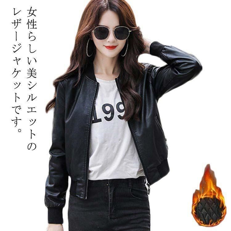 レザージャケット レディース 裏起毛 革ジャン ライダースジャケット ブルゾン バイク レザージャケット シンプル アウター 着痩せ おしゃれ