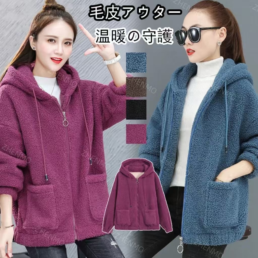 激暖ブルゾン 両面兼用 裏起毛 パーカー レディース 防風 防寒 トップス 上着 長袖 大きいサイズ ゆったり 秋冬 コットンアウター トレンチコート