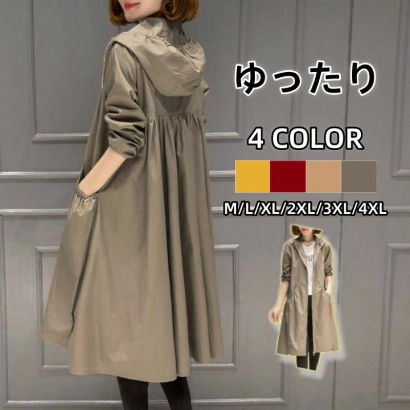 トレンチコート レディース ミディアム丈ジャケット スプリングコート アウター 秋服 韓国風 フード付き バーカー 30代 20代 大きいサイズ お洒落
