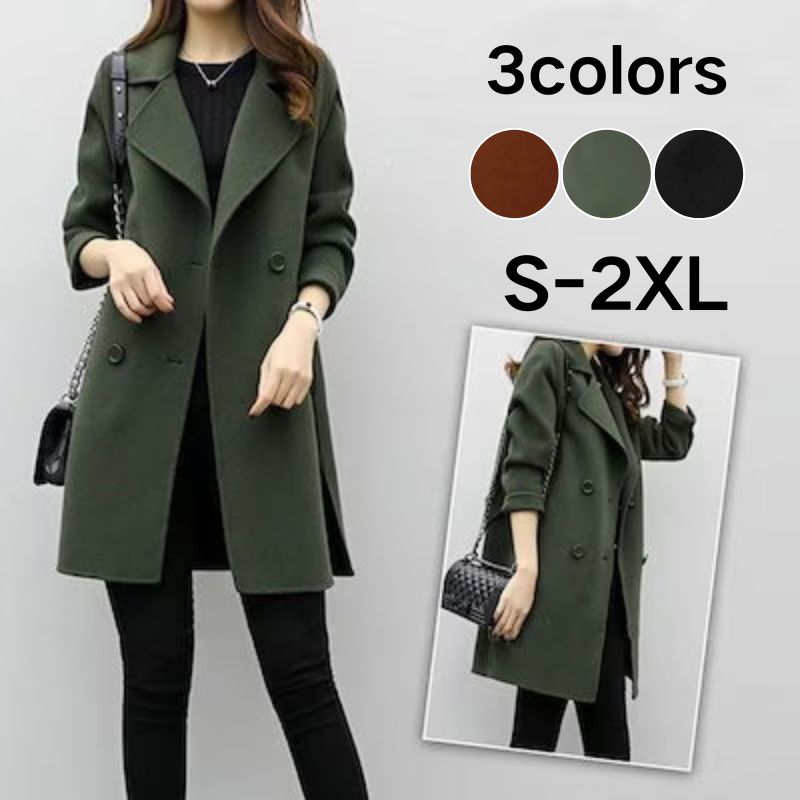 韓国ファッション レディース アウターツイードジャケット 秋冬ダブルブレストコート トレンチコート