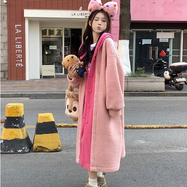 韓国ファッション レディース 冬アウター リバーシブル ラムファー コート ルーズ ミディアム ロング コットンコート ジャケット トレンチコート
