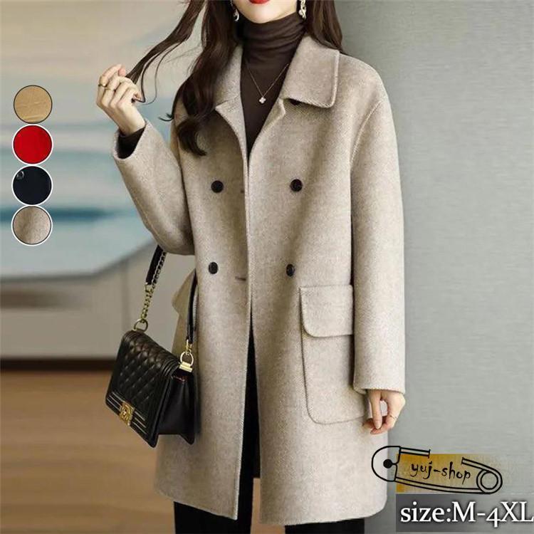 大人っぽチェスターコート 冬アウター春トレンチコートチェスターコート レディース 大きいサイズ ピーコート 秋 無地 ウールコート ロング丈 ジャケット