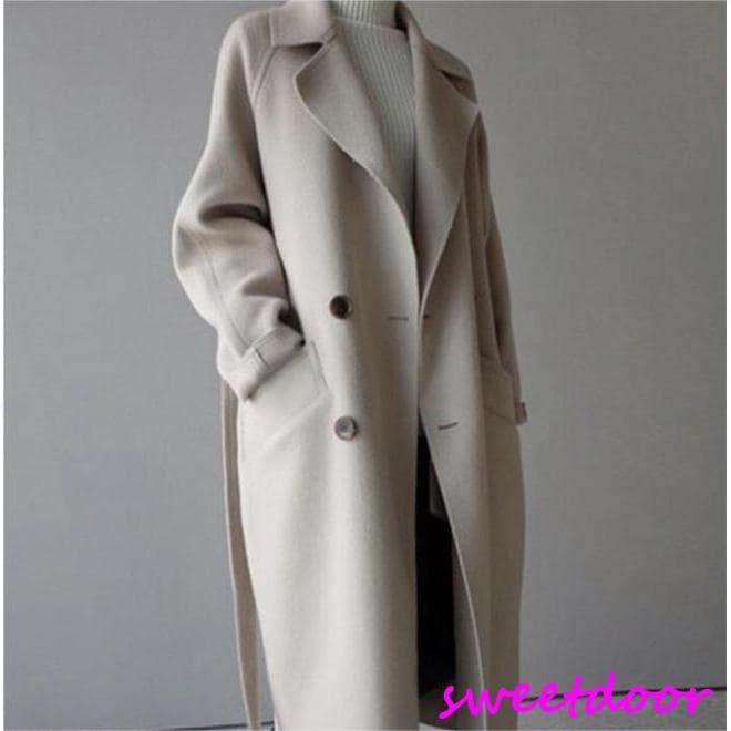 レデイース服アウターピーコートAラインコートロングコート2025春新品可愛いロングマキシ丈灰色グレーS-L ピーコート