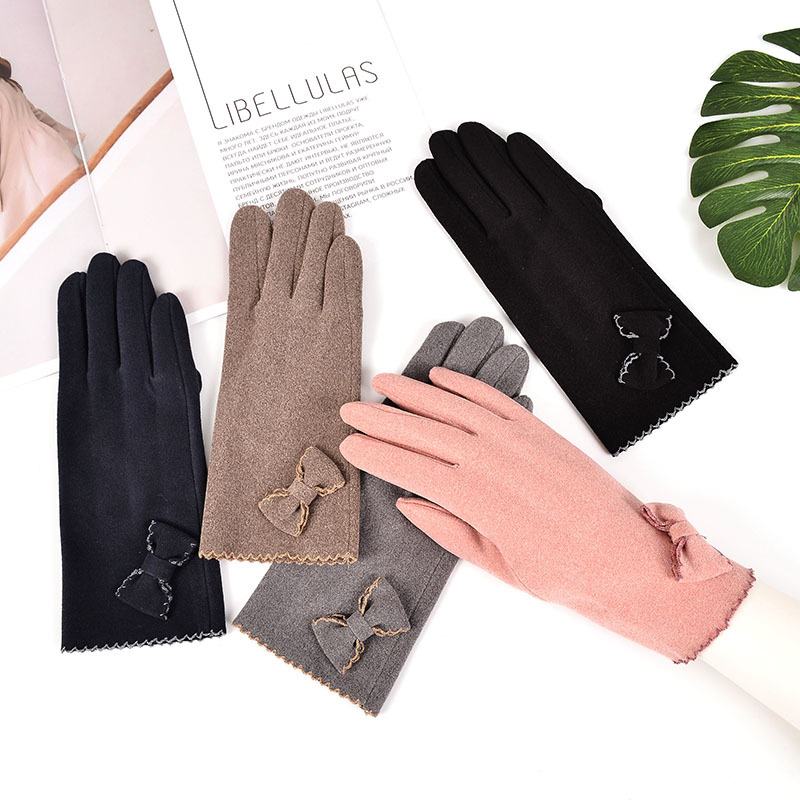 グローブ手袋秋と冬のレディース暖かい手袋かわいい弓の韓国語版アウトドア運転タッチスクリーン手袋に乗って女性 グローブ