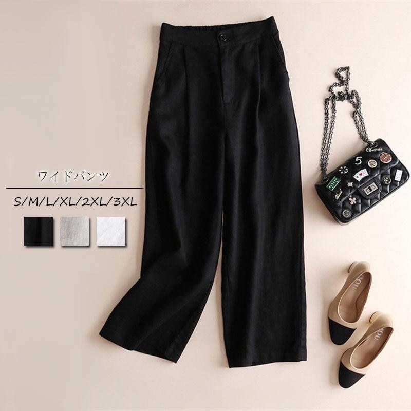 ワイドパンツ レディース ロング丈 パンツ コットン ガウチョパンツ スカーチョ スカンツ ウエストゴム 無地 リネン ガウチョ マキシ丈 通勤 春 春夏