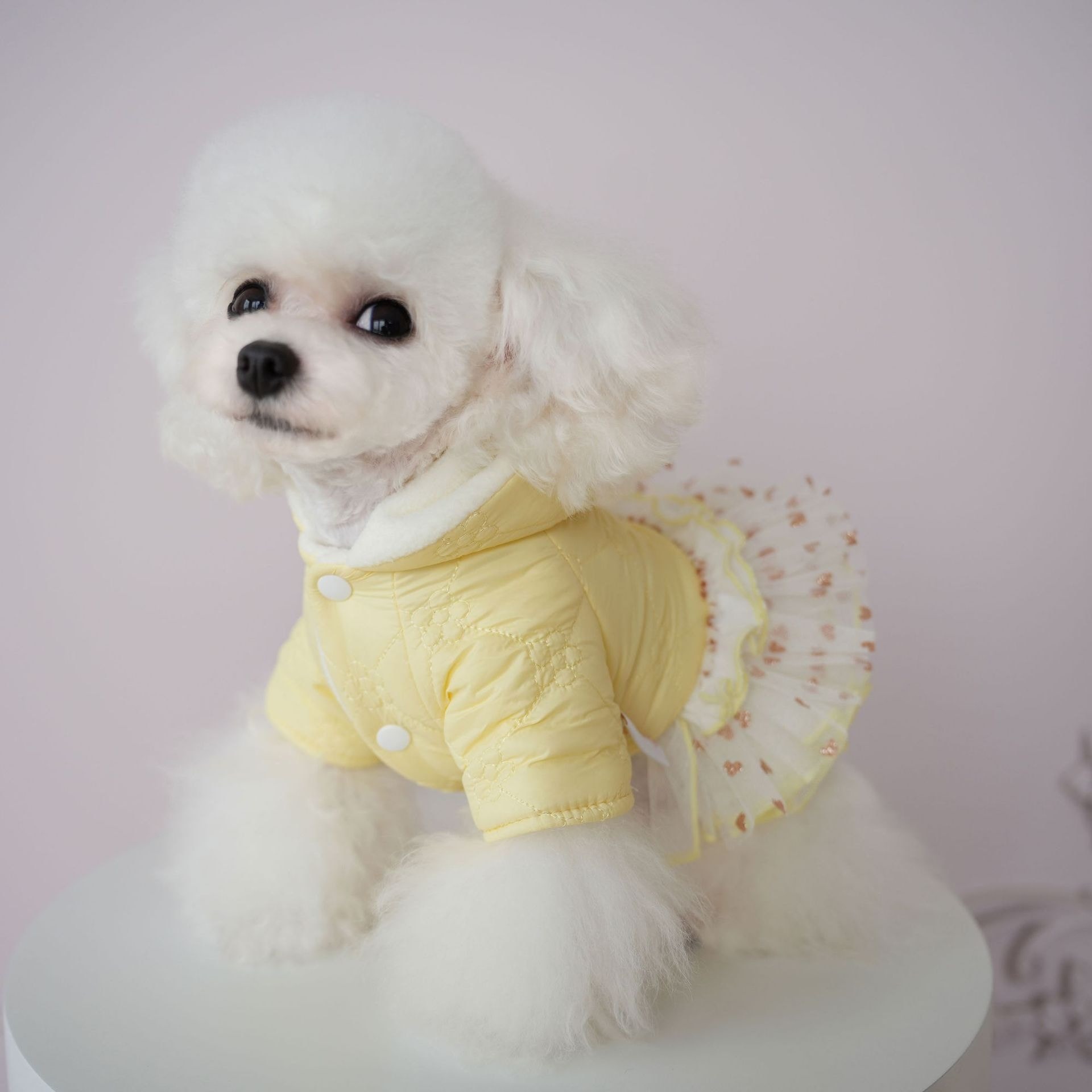 犬の服犬服秋冬新作大輪花チャンキーシフォンホルタードレス帽子付きかわいいぬいぐるみコートビション冬コート 防寒着
