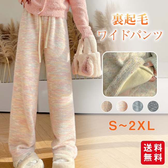 裏起毛ワイドパンツ レディース ズボン ボトムス ウエストゴム 裏起毛 ロングパンツ カジュアル 体型カバー 防寒 秋冬 暖かい