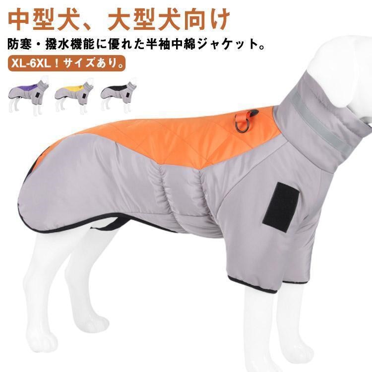 ドッグウェア 背中開き 中綿 コート 配色 中型犬 大型犬 向け 犬服 ダウン ジャケット ハイネック ハーネス 秋 冬 3XL 防寒 防寒着