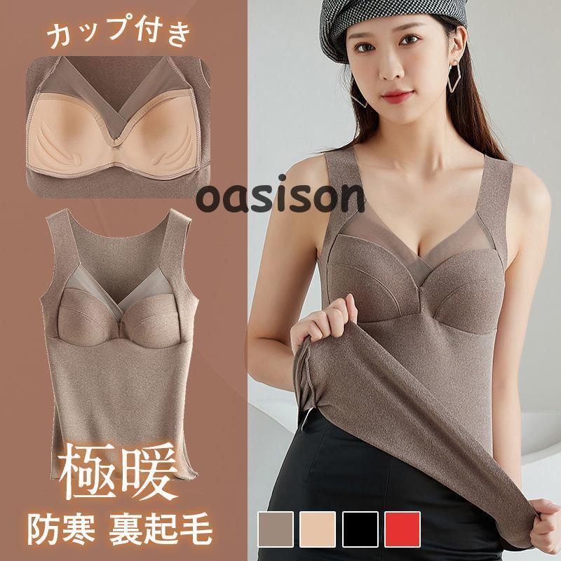 万能流行感 タンクトップ 裏起毛 レディース カップ付き インナー キャミソール 裏ボア 防寒 保温 暖かい ジレ アンダーウェア ノースリーブ 極暖 ストレッチ