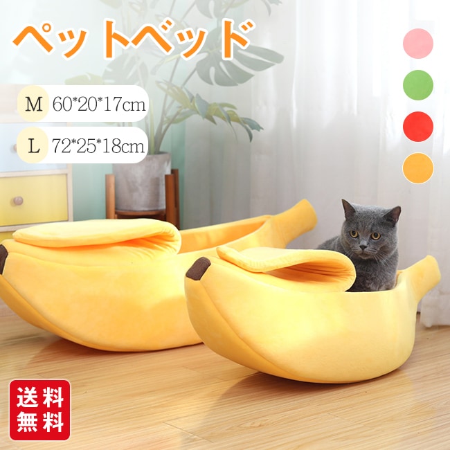 ペットベッド バナナ型 柔らかい クッション 猫用 犬用 布団 おしゃれ 可愛い 寝袋 四季通用 暖かい 保温 防寒 ペットハウス 洗える 寝床 小型犬 中型犬