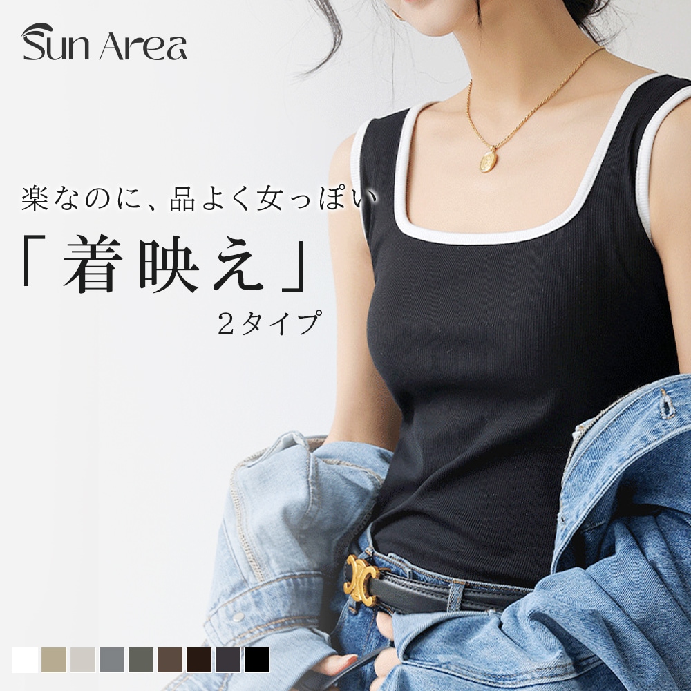 最適なスクエアネックキャミソール タンクトップ トップス レディース服