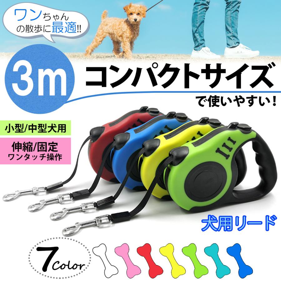 犬用リード 伸縮 自動巻き 丈夫 3m 犬 リード 小型 中型 フック付 コンパクト 長い 短い 調整可 ナイロン ワンタッチ最安値挑戦