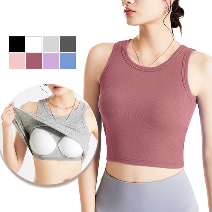 カップ付き タンクトップ クロップド丈 ブラトップ ブラタンク レディース ノースリーブ 通気性 リブ多編み しっかりした生地 フィット rr-005