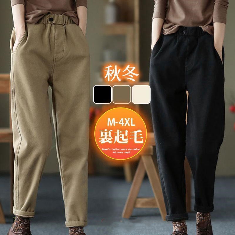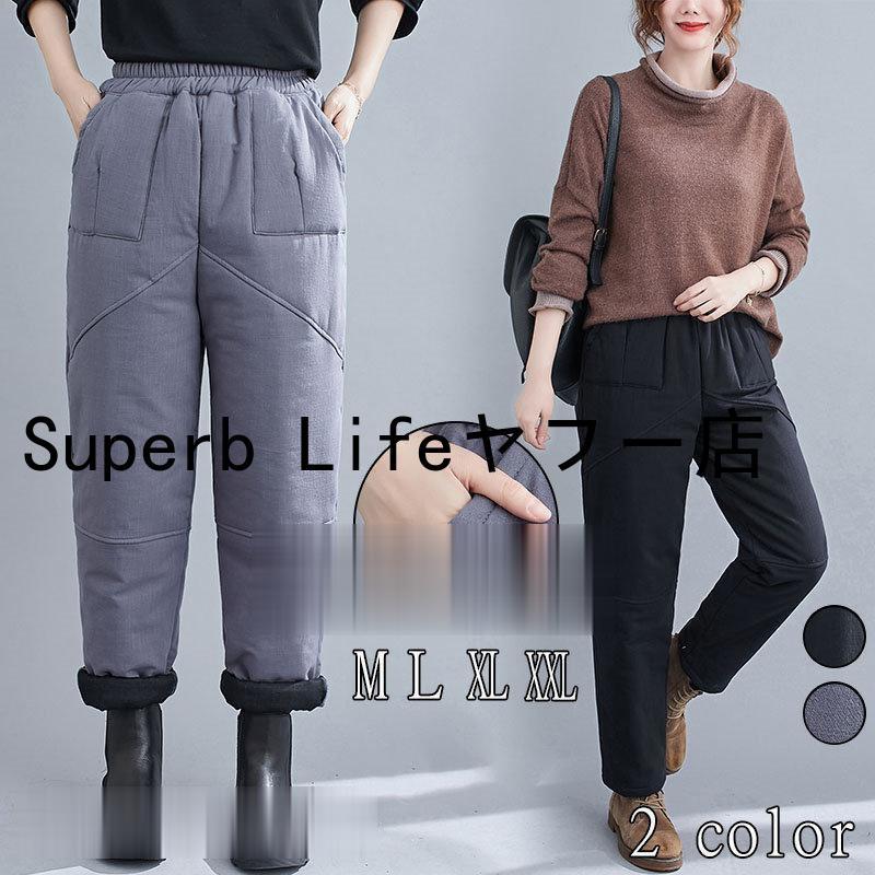 秋冬パンツ レディース ロング丈パンツ 厚手 暖かい 防寒 ゆったり ガウチョパンツ カジュアル ゆったり シンプル ウエストゴム 着痩せ 40代 50代ファッション