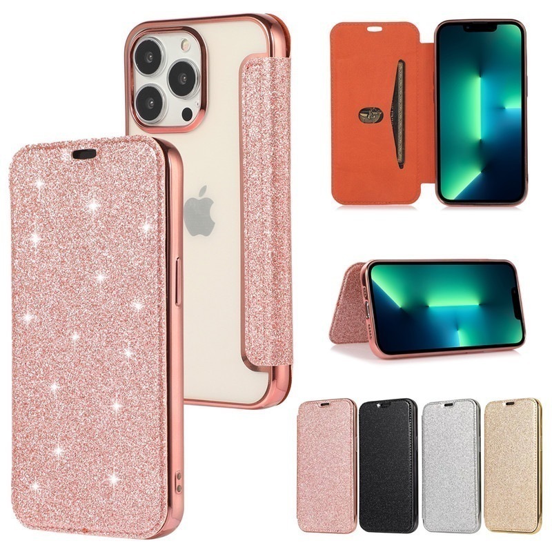 iPhone16ケース iPhone15ケース 手帳型スマホケース iPhone14ケース グリッター スマホケース 電解メッキ 透明 保護ケース TPU iPhoneケース