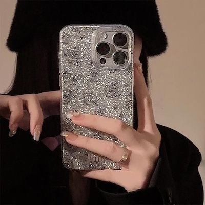 大人気 ラメ キラキラ iPhoneケース 可愛い シルバー 花 花柄 フラワー バラ スマホケースケース iPhone12 iPhone13 iPhone14 iPhone15 Pro Max ケー