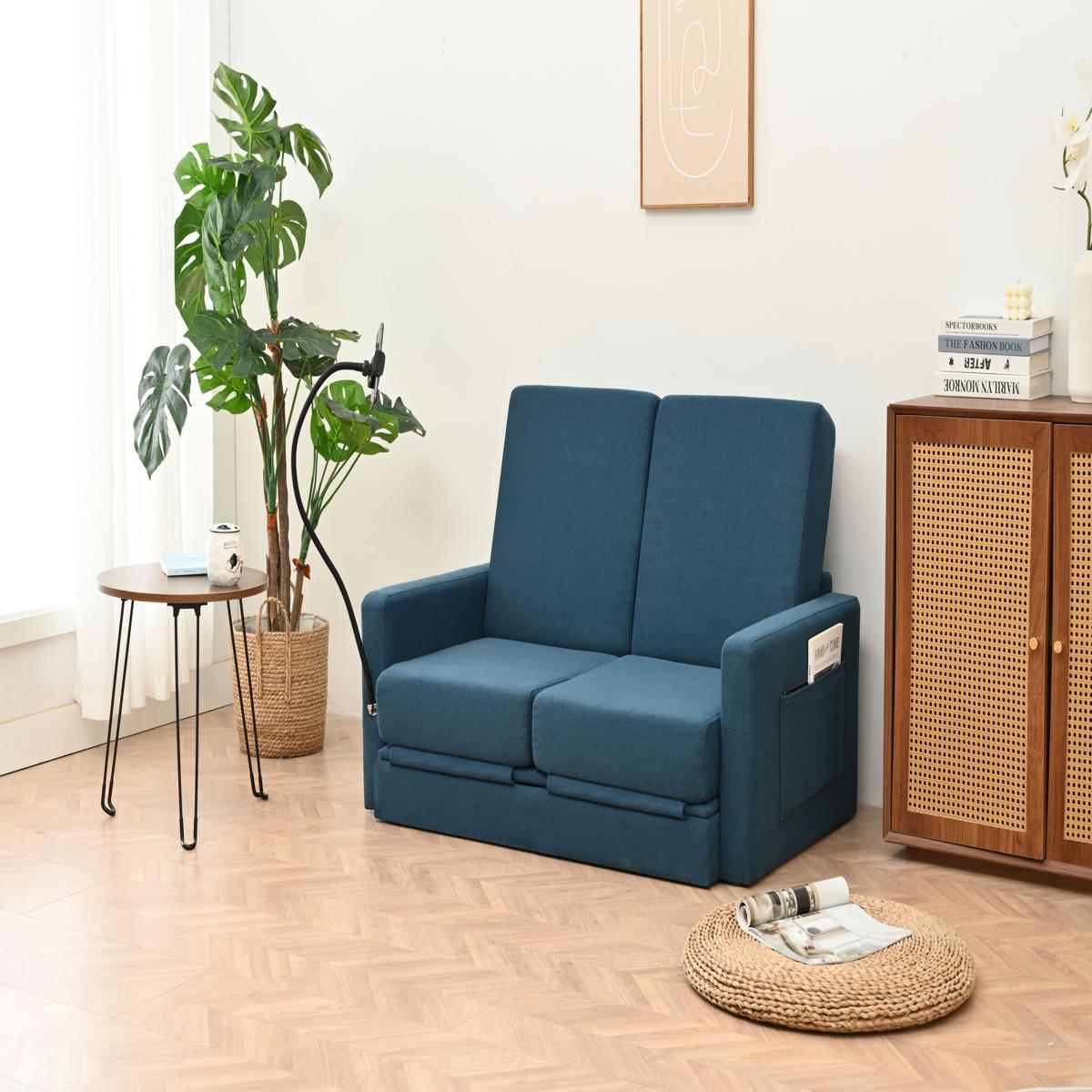 リビングルームのための調節可能な背もたれ付き収納、プルアウトベッド付きラブシートスリーパーソファ China Blue