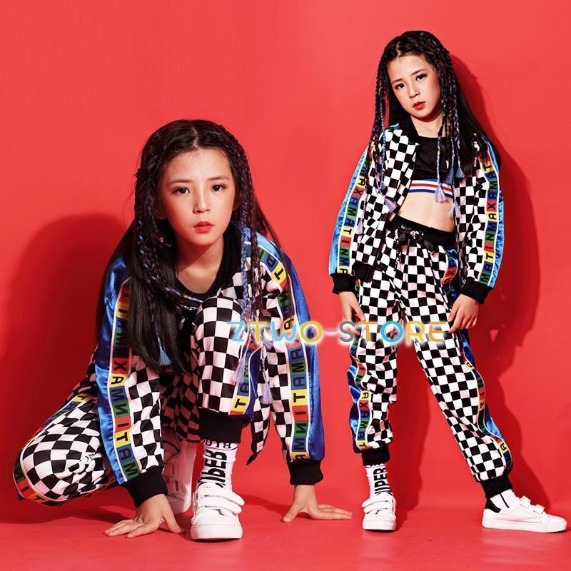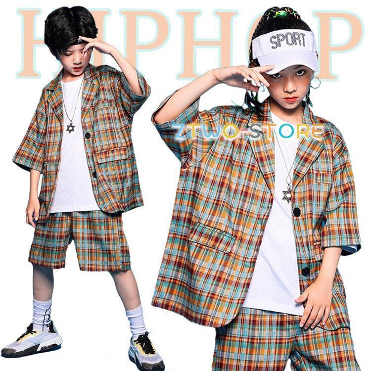 2点 HIPHOP ダンス 衣装 キッズ チェック柄 上下セットアップ ジャズ ダンス 衣装 キッズ 体操服 z638 ダンス