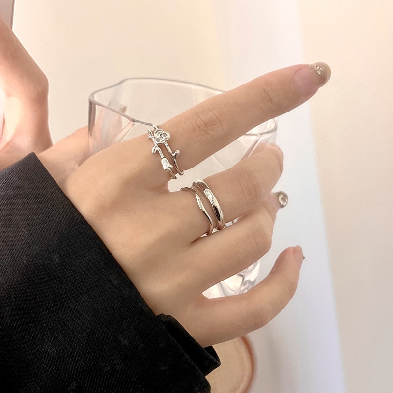 Ins風気質小衆バラ二重指輪個性百合金属風デザイン人差し指指輪7705 指輪