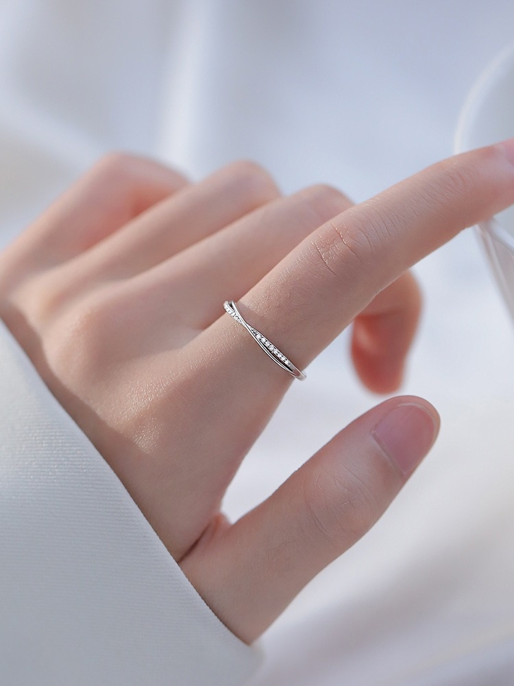 キラッとリング S925ラインリング指輪シンプルクロスリング気質高級感手触り調節可能手元を美しく指輪 指輪