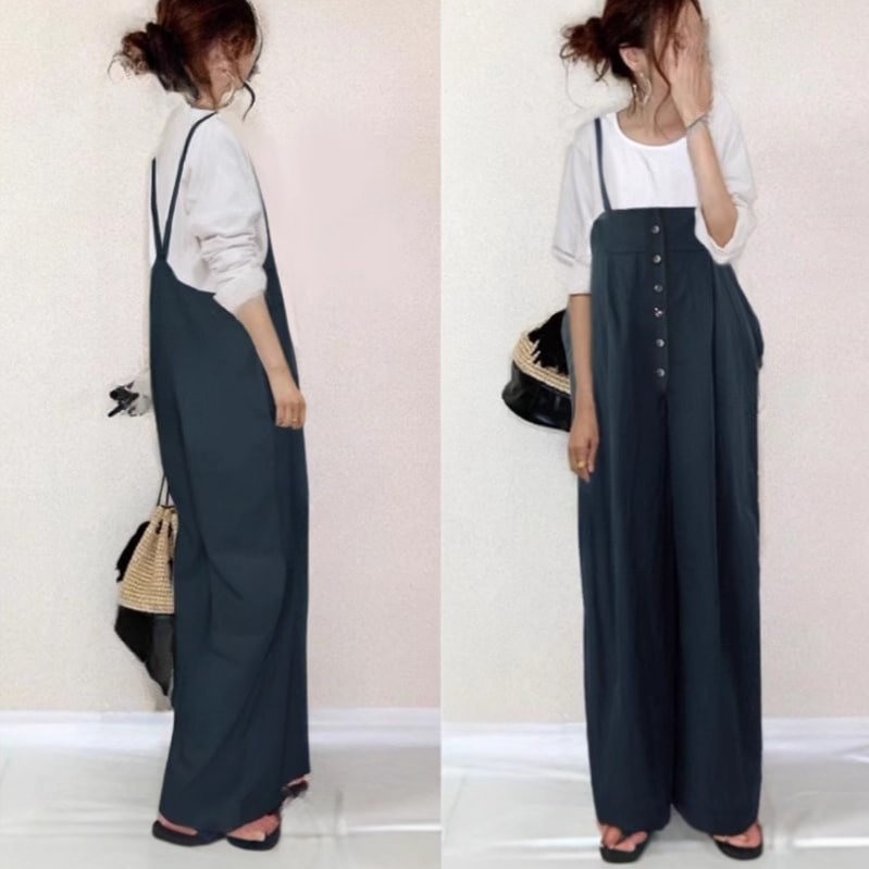 コーデ完成 サロペット オーバーオール ロング ノースリーブ サロペット ワイドパンツ スラックスパンツ デニムパンツ パンツ レディース サロペットパンツゆったりスウェット