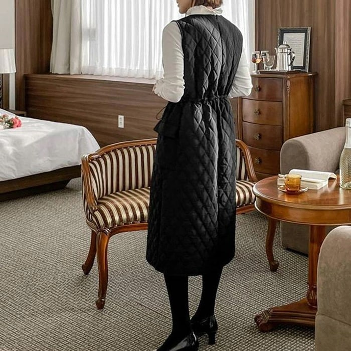 ウエストゴム サロペット 重ね着 ミモレ丈 ノースリーブ ポケット付き ラウンドネック エレガント ベスト 中綿ワンピース ジャンパースカート レディース カジュアル シンプル 上品 秋冬 おしゃれ
