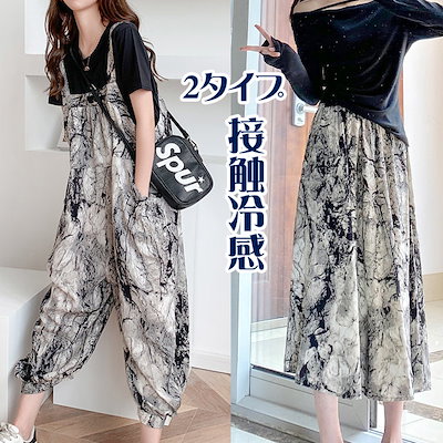 接触冷感 サロペット スカート ズボン 時短コーデ イチオシオールインワン 韓国ファッション レデイース オーバーオール 夏 大きいサイズ 花柄 体型カバー ゆったり オールインワン